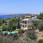 25 minutters gåtur fra Paralia Porto Cheli i Porto Heli, tilbyder Stellar Villa Private Pool-Sea View indkvartering med et fuldt udstyret køkken. Der er en balkon, et fladskærms TV med satellitkanaler og røgdetektorer soveværelser med 4.
